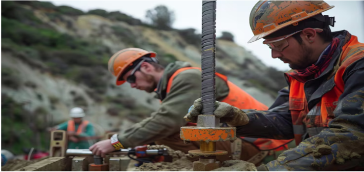 Rock bolting is a technique used in tunneling and mining where a steel rod is